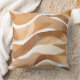 Een neutraal kussen met veel visuele impact met een patroon van waterverf print tan, kameel, en crème vet en golvende strepen