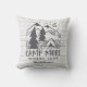 Maak uw kampeerspel of voeg een aangepaste touch toe aan uw camper of camper met dit schattige gepersonaliseerde werpkussen met een witte houten achtergrond. Rustiek ontwerp is voorzien van het citaat "camp more, concern less" in verontruste grijze letters onder een handgetekende illustratie van een kampeertent in een dennenbos met een halve maan die boven besneeuwde bergtoppen stijgt. De perfecte manier om een speciale reis te herdenken, of voor iedereen die van kamperen houdt, kunt u dit werpkussen aanpassen met uw tekstkeuze onder het ontwerp. Voeg uw kampeerbestemming, het jaar of een familienaam toe voor een speciaal tintje.