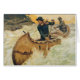 Kunstwerk met cowboys in een kano die op de verkrachters rijdt