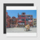 Schilderen van het Venetië-plein. Kart met dozen in het midden van het oude Italiaanse plein met kleurrijke gebouwen in Venetië, Italië. Postdiensten, bezorging in Italië. Boxen bleven alleen.