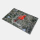 Helder rood noordelijk kardinaal is een levendige eerste indruk op stevige deurmat.
