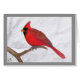 Heldere rode kardinaal met een sneeuwachtergrond. Van een waterverf potlood tekening van M Rogers.