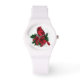 Door de hand getrokken vectorillustratie van een kardinaal dier op een bouquet van Poinsettia, vlinderrassen en bessen