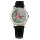 Bright Northern Cardinal maakt een geweldige indruk op aantrekkelijk horloge.