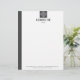 Een modern, eenvoudig, stijlvol en elegant grijs maatbriefhoofd dat een grijze zijband en een bord van geborsteld metaal bevat. Dit bedrijfsbriefhead is perfect voor makelaars in onroerend goed, home stylists, onroerendgoedmanagers, makelaars en anderen in de vastgoedsector. Ook voor advocaten of andere beoefenaars van juridische beroepen, financiële professionals, medische professionals en CEO-, CFO- of managementfunctionarissen in elke bedrijfstak of ondernemingsomgeving.