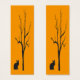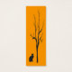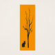Dit bladwijzer is voorzien van een zwarte kat onder een kale zwarte boom die recht naar je kijkt tegen een briljante gouden oranje achtergrond. Het afbeelding wordt op de achterkant herhaald.