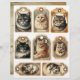 Dit tweezijdige papier heeft labels met katten erop. Het is perfect voor plakboeken, junk journals, het maken van kaarten, collages en meer. Dit artikel is nummer één uit een set van twee.