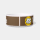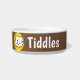 Voeg de naam van uw huisdier toe aan deze leuke kom die een cartoon stijlillustratie van een kattenglimlach bevat. Bruine achtergrond.