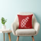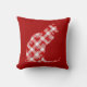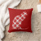 Kussen in een zittend kattensilhouet in vakantiepatroon van rode en witte buffel geruite en verspreide sneeuwvlokken