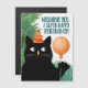 Wenskaart van het feest met zwarte kat, planten en ballon. ★ Controleer het overeenkomende collectie voor COÖRDINERENDE ITEMS. ・ Originele illustraties van PUPU STUDIO. 100% exclusief product.