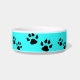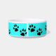 zwarte poot drukt rond deze blauwe en witte keramische kom