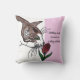 Kat ruikt diepe rode roos kussen