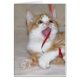 oranje en wit tafelkeuten speelt met lint