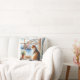 Decoratorkussen met het kattenschilderij van een waterverf die in een venster zit en uitkijkt naar kleurrijke mediterrane huizen aan zee.