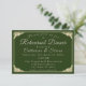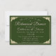 Het katholieke winterweddenschap biedt het juiste formaat voor een uitnodiging voor een repetitief diner, die gedeeltelijk is omgeven door het afbeelding van een winterkreet. Kleur - jager groen. Heel formeel en elegant.