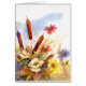 waterverf van katten die in de wind waaien in het midden van een aantal wilde bloemen