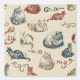 kattenpatroon op een beige achtergrond met krullen. De katten komen uit het boek Our Cats by Weir, 1892, met dank aan Project Gutenberg.