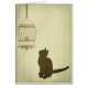 Een prachtige kaart met het silhouet van een kat onder een vogelkooi. Een behang op de achtergrond. Voeg je eigen bericht toe om het uniek voor je te maken.