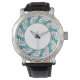 Dit moderne horloge heeft een grillig ontwerp dat perfect is voor kattenliefhebbers. Het horloge met dierenthema toont een cirkelvormig patroon van elegante turquoise katten, waardoor een stijlvolle en opvallende look ontstaat. Met zijn ingewikkelde geometrische accenten en witte achtergrond combineert dit unieke horloge kunst met functionaliteit. Een schattig horloge dat een uitstekend cadeau is voor kattenliefhebbers, het is perfect voor het toevoegen van een vleugje charme aan iemands pols. Of het nu gaat om een vriend die van huisdieren houdt of om jezelf te behandelen, het strakke ontwerp versterkt zijn moderne aantrekkingskracht, waardoor het een stijlvol horloge is.