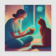 Een vrouw zit op de grond, met een kaars in haar hand, met een kat tegenover haar. Samen delen ze een geheime, spirituele connectie, alsof de kat haar therapeut is. Dit grillige en humoristische fantasiekunstwerk, gemaakt door Lumirala en Magic Media AI, legt de unieke band vast tussen de vrouw en haar katachtige vriend. Deze magnetische kaart is verkrijgbaar in verschillende maten en is ideaal om een vleugje betovering en humor aan uw boodschap toe te voegen.Het is een ideale kaart voor kattenliefhebbers, kunstliefhebbers en iedereen die de mystieke en magische aspecten van het leven waardeert.