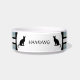 De witte kat van keramische kat voedselkom met vier toonband, wit en zwart als stichting, en om het even welke coördinerende kleur u bij de "pas"optie (binnen de personaliseer optie) kiest zal in twee tonen .HAMbyWhiteGlove verschijnen. Hier getoond in de kleur Slate Blue.