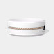 Witte kat-kat-voedselkom heeft twee kat-afbeeldingen aan beide zijden van de zwarte naam-plaathouder. Er is een lichtbeige kleurenband aan elke kant, die een knapperig ontwerp door het heeft. Een zeer vrouwelijk en regionaal uiterlijk in een kat kom. Ontworpen door: HAMbyWhiteGlove.