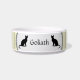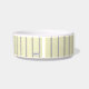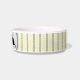 Witte kat-kat-voedselkom met een mooi bleek geel en zeer dun wit en dun zwart, strap ontwerp. HAMbyWhiteGlove