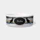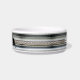 Witte kat-kat-voedselkom heeft twee kat-afbeeldingen aan beide zijden van de zwarte naam-plaathouder. De achtergrond heeft een wanhopig mist effect voor een mysterieus uiterlijk. Er is een kleurenband aan elke kant, die een criss-dwars ontwerp door het heeft. Een heel coole blik in een gepersonaliseerde kattenkom. Ontworpen door: HAMbyWhiteGlove.
