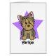 Koop schattige Yorkie-cadeaus, getekend in een Japanse cartoon die bekend staat als kawaii. Het schattige speelgoed hondenras zit in het midden van een grote paarse ster, met onderaan de naam van het ras. Op een groot assortiment van Yorkshire Terrier-koopwaar voor hondenliefhebbers.