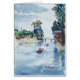 Kayakers op Weeki Wachie is een waterverf schilderij van twee mensen die op een heldere blauwe rivier naar een brug gaan. Het stroomgebied wordt geflankeerd door bomen en een aantal gebouwen aan de kust. Het schilderen van de waterverf wordt in losse stijl gedaan en de prominente kleur is blauw met groen en accenten van rood, bruin, en bruin. Gedrukt van een origineel kunstschilderij op papier door JC Prida. 2015