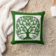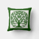 Kussen in een gestileerde, Keltische knoop, levensboom ontwerp in donkere smaragdgroen op een witte achtergrond