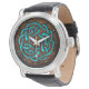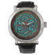 Keltische knoop geëmailleerd blauw op leer digital horloge
