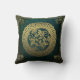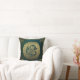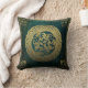 Gooi een kussen met oud afbeelding van een Keltische stamknoop in donkere kleuren van groen en goud.