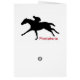 Vrouw trainer Leah Gyarmati krijgt een briefing van Jockey Kendrick Carmouche na zijn ritje op Zee Raven. Kendrick draagt wijn en witte gekleurde zijde met zijn postkoek op zijn gezicht. Leah draagt een grijze trui met haar racevorm die uit haar zakboekje steekt.