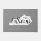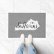 Moderne boerenboerengepersonaliseerde doormat met je familienaam in je staatskaart. Faux burlap canvastextuurachtergrond. Klik op Aanpassen om uw eigen tekst en afbeeldingen toe te voegen en een uniek ontwerp te creëer!