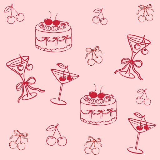 Een leuke verjaardagsthema om de persoon van de dag te vieren, De Kers op de Taart! De tinten rood en een snufje groen zijn stout en bruisend. De icoontjes van de cake, kersen en cocktailglazen zijn schattig en alles is met een strik vastgemaakt. Het ontwerp combineert retro-vibes met moderne accenten voor een unieke ervaring.