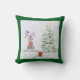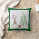 Een kerstkonijn en birdie staren naar een prachtige kerstboom! Voeg een pop feestelijke kleur en grilligheid toe aan uw kerstdecor met een kussen. Je kunt het kussen ook in een buitenstof bestellen om je veranda te versieren!
