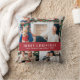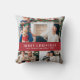 Kerst Foto Sierkussen. Prettige feestdagen Deze schattige en unieke notenkraker Vrolijk kerstfeest of kussen beschikt over prachtige handgeschilderde waterverf notenkraker speelgoed soldaten rond een versierde kerstboom met tekst en vier foto's voor personaliseren op een rode achtergrond. Vind overeenkomende items in het Christmas Holiday Nutcracker Collectie.