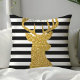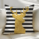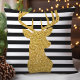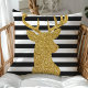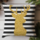 Voeg een vleugje feestelijke glamour toe aan je vakantiedecor met deze elegante sierkussen met een schitterende gouden glitter hertensilhouet tegen klassieke zwart-wit strepen. Perfect voor het brengen van kerstvreugde en verfijning naar je woonkamer, slaapkamer of gezellige hoek. Dit stijlvolle kussen combineert de magie van Kerstmis met een modern ontwerp, waardoor het een opvallende accent is voor elke ruimte tijdens het kerstseizoen.