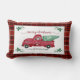 "Kerst Gnome Tree Boerderij Rode Vrachtwagen Plaid, Lumbaal Kussen Home Decor." Gepersonaliseerde familienaam Kussen, home decor. Rood zwart en grijs Christmas Plaid wordt gecombineerd met schattig waterverf kunstwerk van de internationaal geprezen erkende kunstenaar Audrey Jeanne Roberts, copyright.