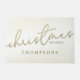Dit ontwerp is voorzien van een kerstvakantie kalligrafie script deurmat met stijlvolle, stijlvolle, moderne trendy zegeningen, gouden gradiënt typografie, creatief fancy belettering lettertype tekst, creatief simplistische elegantie trendy, kerst zegen citaat gezegde, aangepaste familienaam gepersonaliseerd, kerst vakantie outdoor welkom deurmat, simplistische elegantie gouden belettering