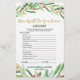 Dit kerstfeest heilig "wat zit er in je handtas" spel is perfect voor een winter vrijgezellenfeest. Aan de voorkant van de gamekaart staat "hoe goed ken je de bruid" en aan de achterkant van de kaart staat "wat er in je tas zit". Het ontwerp is voorzien van een groene waterverf met rode bessen en een elegant faux goudglitter lettertype. Pas de voorzijde van de kaart aan met de naam van de bruid- en vrijgezellenfeest-datum. Opmerking: dit ontwerp bevat geen echte goudglitter. Het is een afbeelding van hoge kwaliteit gemaakt om eruit te zien als een gouden glans.