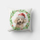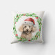 Kerst gooi kussen met een waterverf poedel en waterverf kerst krans ontwerp. Voeg de hondennaam toe aan het ontwerp en het is het perfecte cadeau-idee voor dat hondenliefhebber dat je kent, of voor jezelf!