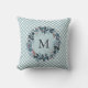Kerst Hulst Bessen Krans Gingham Turquoise en Bourgondië Rode Worp Kussen... Onze feestelijke Kerst thematische worp kussen heeft een krans van hulst bladeren, rode bessen en dennen takken in tinten turquoise en bourgondië rood tegen een turquoise en witte gingham geruit achtergrond. Het monogram kan eenvoudig worden herzien op de personalisatie sjabloon.