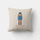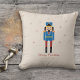 Een kerstkussen met een illustratie van een Notenkraker en enkele sterren op een lichtbruine achtergrond. Perfect om aan te bieden of voor uw kerstdecoratie.
