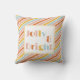 De kussenhoes heeft een kleurrijk patroon met brede strepen en de tekst "Jolly and Bright" in een leuk, retro, modern lettertype. De afbeelding staat zowel op de voor- als achterkant van de kussenhoes. Ideaal om wat frisse kerststemming aan je interieur toe te voegen.