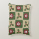 Vier vierkantjes in groen en bruin zijn voorzien van rode versieringen met witte sneeuwvlokken en groene holly met rode bessen. White stitching voegt een decoratieve aanraking toe, waardoor het herhalingspatroon het uiterlijk van een quilt geeft, wat een perfect gezellig gevoel creëert voor de kerstvakantie.