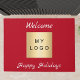 Rode achtergrond. Personaliseer en voeg uw zakelijke logo toe. Prettige feestdagen Tekst: Welkom en