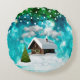 Kerst Sneeuw Cottage & Lichten Turquoise Bokeh Rond Kussen
