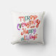 Een feestelijk kerstkussen gezegde 'Merry Everything and Happy Always' in felle kleurrijke letters.